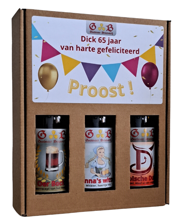 Onze bieren kunnen we ook in een mooie verpakking met eigen etiket doen, dit kan met flessen met standaard etiket of ook met eigen etiket.